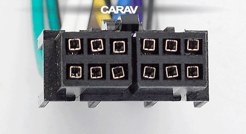 12-pin conector (hembra) <---> CARAV <---> ISO (macho) Alimentación y Altavoces