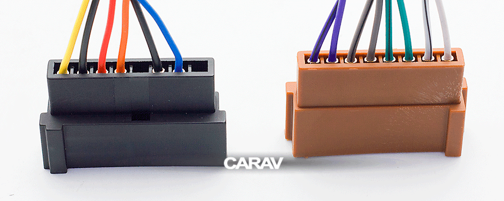 ISO (hembra) <---> CARAV <---> conector OEM (macho)