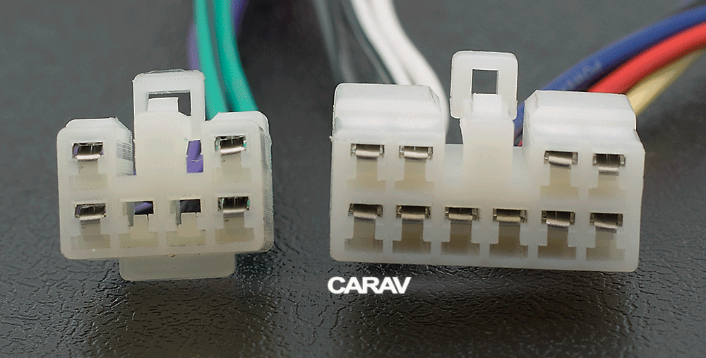 ISO (hembra) <---> CARAV <---> conector OEM (macho)