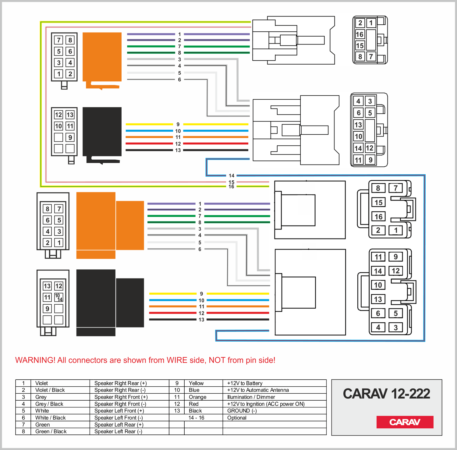 conector OEM (macho) + ISO (hembra) <---> CARAV <---> conector OEM (hembra) + ISO (macho)