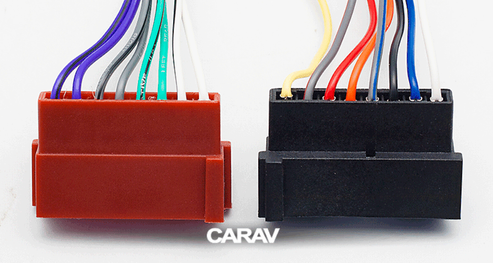 ISO (hembra) <---> CARAV <---> conector OEM (macho)