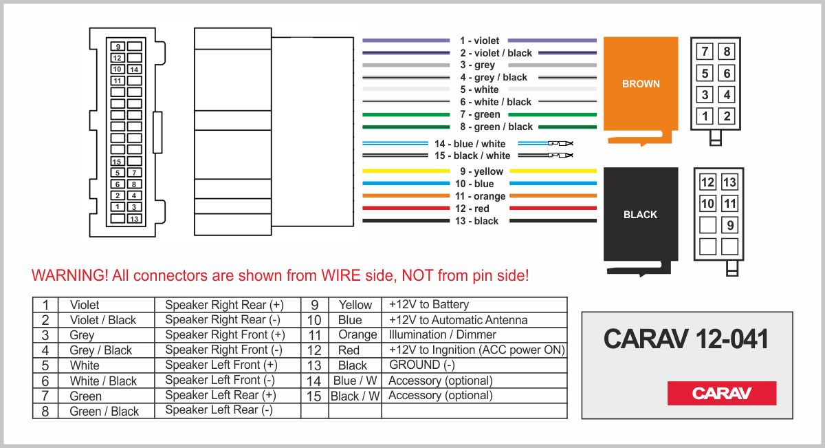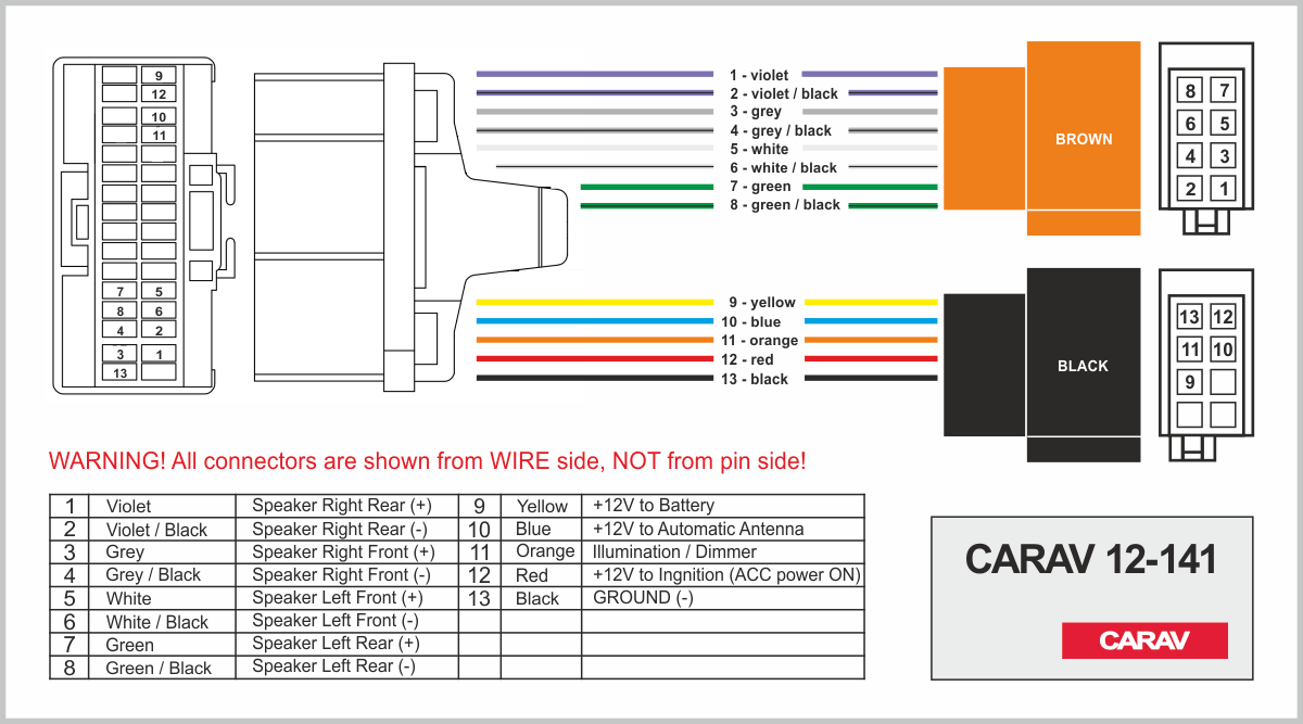 ISO (hembra) <---> CARAV <---> conector OEM (macho)
